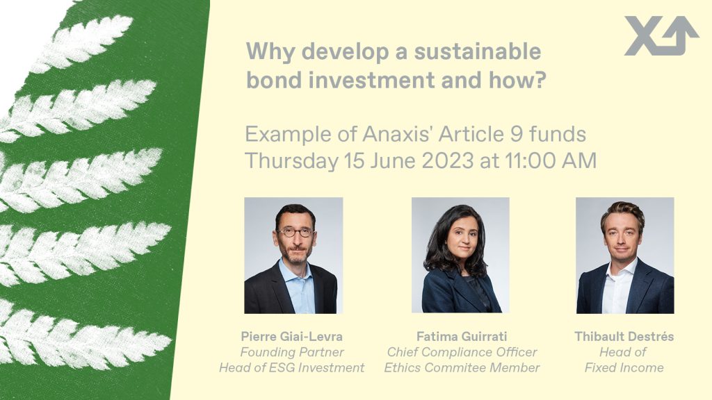 Pierre Giai-Levra, Founding Partner and ESG Manager, Fatima Guirrati, Ethics Committee member, and Thibault Destrés, Head of Fixed Income, will present the specific reasons driving Anaxis to develop its Article 9 fund offer, as well as the resulting selection process.